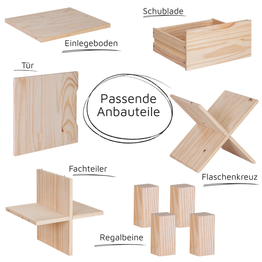 | Material | Kiefer-Vollholz (FSC zertifiziert) |
