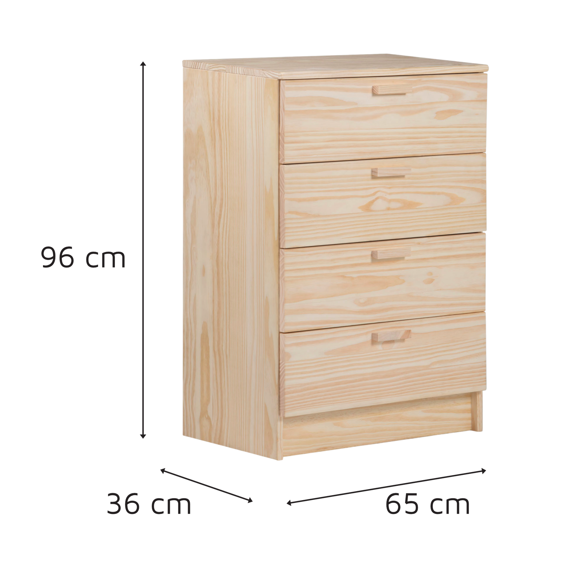 Material Kiefer-Vollholz (PEFC zertifiziert), Rückwände und Schubladenböden aus MDF-Platte