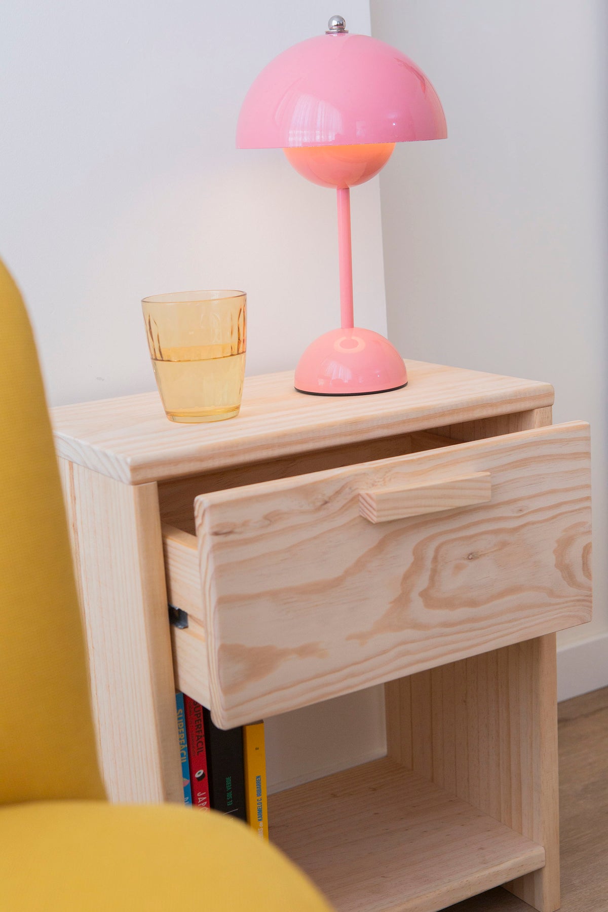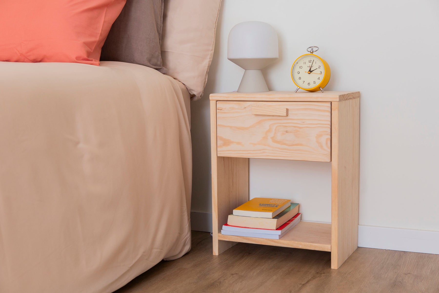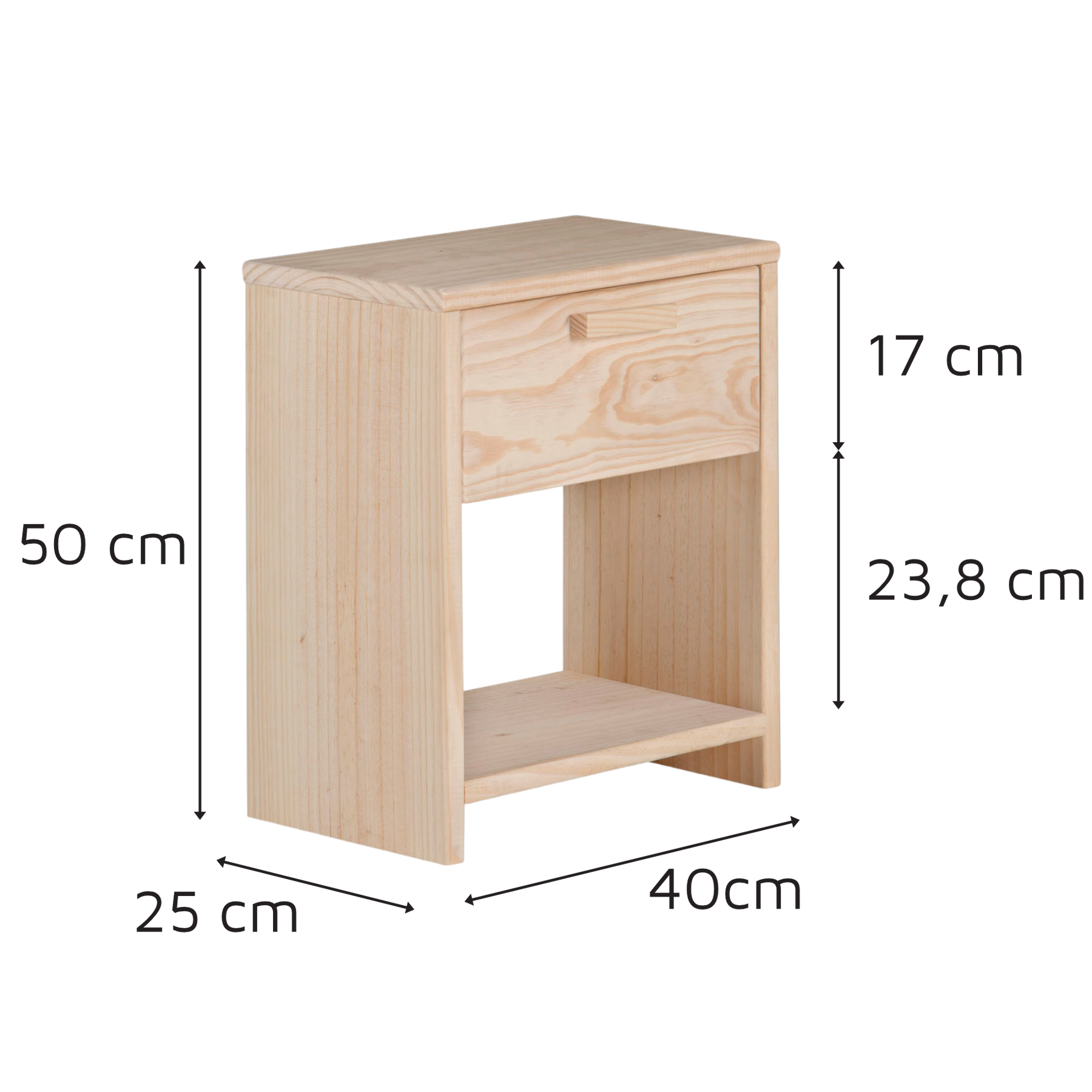 | Material | Kiefer-Vollholz (PEFC zertifiziert), Schublade mit Metallführung |